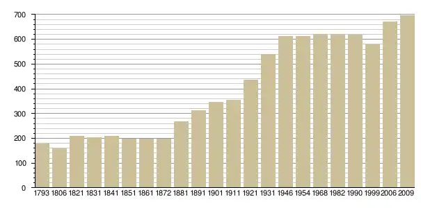 Динаміка населення (base Cassini de l'EHESS pour les nombres retenus jusque 1962[3], base Insee à partir de 1968 (population sans doubles comptes puis population municipale à partir de 2006)[4] · [5] ):