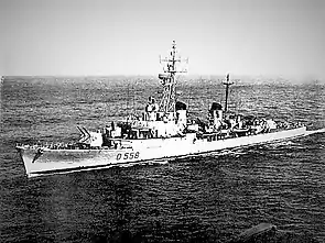 «Cantiere navale di Riva Trigoso» | D 558 | 7 травня 1952 року | 16 вересня 1956 року | 25 січня 1958 року | Виключений зі складу флоту у 1983 році |