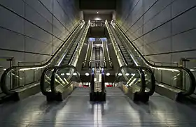 Ескала́тор (англ. escalator від лат. scalae — сходи) — транспортний пристрій, рухома доріжка у вигляді похилих сходів з рухомими горизонтальними сходинками для переміщення людей між різними рівнями вгору чи вниз у висотних громадських будівлях: магазинах, станціях метрополітену, готелях, вокзалах, аеропортах.