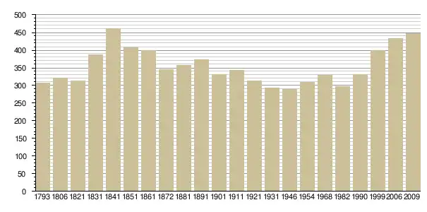 Динаміка населення (base Cassini de l'EHESS pour les nombres retenus jusque 1962[3], base Insee à partir de 1968 (population sans doubles comptes puis population municipale à partir de 2006)[4] · [5] ):