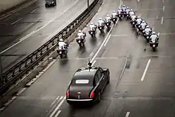 Ескорт мотоциклістів супроводжує королеву Єлизавету ІІ під час державного візиту у Берліні (2015)