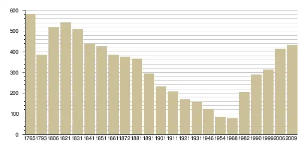 Динаміка населення (Baratier, Duby & Hildesheimer pour l’Ancien Régime ; Insee[3], EHESS pour les chiffres issus des recensements légaux ):