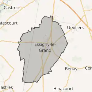 - Розташування муніципалітету Ессіньї-ле-Гран на мапі Франції та сусідні муніципалітети