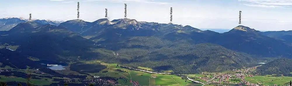 Найважливіші вершини Естерського хребта — Кроттенкопф (2086 м), Бішоф (2033 м), Гое Кістен (1,922 м), Гоер Фрікен (1 940 м) та Зімецберг (1836 м). Підйоми як з долини Лойсаха, так і з Крюна чи Вальгау на південному сході відносно тривалі. В результаті гори відносно тихі, за винятком гори Ванк (1780 м), до якої можна дістатися канатною дорогою. Більшість туристів і альпіністів приваблюють довколишні більш високі масиви Веттерштайн, Карвендель та найвища вершина Німеччини — Цугшпітце.