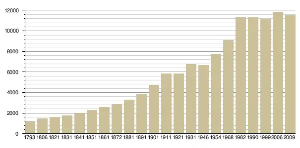 Динаміка населення (base Cassini de l'EHESS pour les nombres retenus jusque 1962[3], base Insee à partir de 1968 (population sans doubles comptes puis population municipale à partir de 2006)[4] · [5] ):