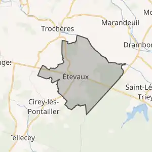 - Розташування муніципалітету Етево на мапі Франції та сусідні муніципалітети