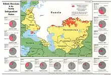 Етнографічна карта – карта, що показує географічне розміщення й просторові взаємини явищ й об'єктів. Основні види етнографічних карт: етнічні, історико-етнічні (характеризують розселення народів в минулому) та історико-етнографічні (відображають різні сторони життя народів, характерні риси їх традиційної матеріальної й духовної культури). Етнічна карта — географічна карта на якій зображено особливості розселення різних етнічних груп на певній території. На ній зображуються як суцільні етнічні території певних народів (території, що характеризується певною однорідністю етнічного складу постійних мешканців), так й етнічні анклави (порівняно невеликі частини етнічної території певного етносу, оточені іншою етнічною територією). На карті також відображають чисельність етносів, їх приналежність до тієї чи іншої раси, походження (етногенез). Крім того, показують поширення мов (мовних груп), діалектів, релігій та вірувань.[1].[2].