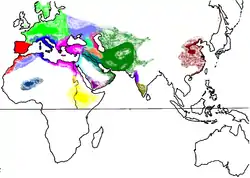 Розташування єврейських етнічних груп у Африці та Євразії близька 1490 року н. е.