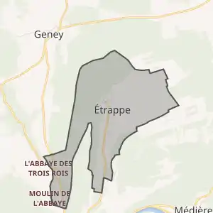 - Розташування муніципалітету Етрапп на мапі Франції та сусідні муніципалітети