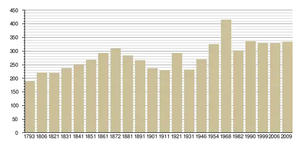 Динаміка населення (base Cassini de l'EHESS pour les nombres retenus jusque 1962[3], base Insee à partir de 1968 (population sans doubles comptes puis population municipale à partir de 2006)[4] · [5] ):
