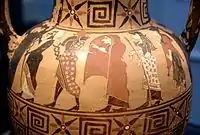 Ахіл в засаді біля водограю. Сцена з гробниці Биків. Тарквінія, 540-530 до н. е.