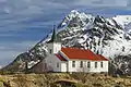 Церква Сілдполлнер, позаду гора Хігравстіндар, найвища гора острова