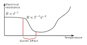 Механізм ефекту Гуржи наступний: Величина опору провідника обернена до — середня довжина вільного пробігу, що відповідає втраті імпульсу в системі електронів