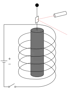 Досліджується циліндр з феромагнітного матеріалу, підвішений за допомогою тонкої нитки всередині циліндричної котушки, яка використовується для створення осьового магнітного поля, що намагнічує циліндр вздовж його осі. Зміна електричного струму в котушці змінює магнітне поле, яке створює котушка, що змінює намагніченість феромагнітного циліндра і, завдяки описаному ефекту, його кутовий момент. Зміна моменту руху викликає зміну швидкості обертання циліндра, що контролюється за допомогою оптичних приладів. Зовнішнє поле взаємодіючи з магнітним диполем не може виробляти жодного крутного моменту ( ) вздовж поля. У цих експериментах намагнічування відбувається вздовж напрямку поля, створеного котушкою намагнічування, отже, за відсутності інших зовнішніх полів, кутовий момент вздовж цієї осі повинен зберігатися.