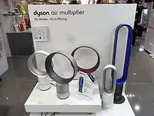 Ефект Коанда часто у винахідницькій практиці використовується для засмоктування додаткової маси повітря не через вентилятор, а методом захоплення повітря швидкісним потоком. Це вважається ефективнішим. Джеймс Дайсон з інженерами, коли розробляли сушку для рук, звернули увагу, що в отвір для рук засмоктується досить багато повітря. Вони використали це явище і створили вентилятор без зовнішнього повітряного гвинта. Потік повітря об'ємною витратою 20 літрів за секунду зі швидкістю 88 км/год виходить з вузької щілини розміром 1,3 мм. Він захоплює і подає навколишнє повітря з витратою, що у 15 разів перевищує витрату повітря через щілину і швидкість якого сповільнюється до 35 км/год. Це забезпечується 40-ватним електродвигуном.