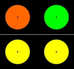 Наприклад, якщо спочатку на декілька секунд зосередитись на точках в центрах різнокольорових дисків у верхній частини наведеного малюнка, а потім подивитися на такі самі точки в нижній частині малюнка, два нижні диски на декілька моментів видаватимуться різних кольорів, хоча мають однаковий колір.