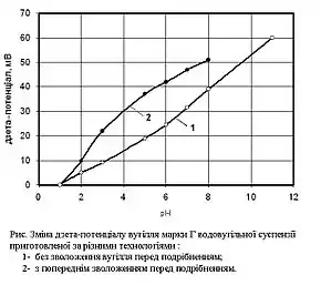 Приклад — зміна характеристик висококонцентрованої водовугільної суспензії — підвищення її седиментаційної стійкості і покращення реологічних характеристик. Це обумовлено зміною дзета-потенціалу подрібнених вугільних зерен за рахунок переважного відкриття окиснених поверхонь пор, що спричиняє гідрофілізацію вугільної речовини (зрушення гідрофільно-гідрофобного балансу сумарної зовнішньої поверхні подрібненого вугілля у гідрофільну область).