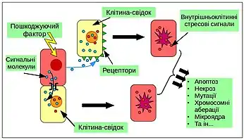 Ефект "свідка" - феномен, при якому пошкоджується клітина, що не піддавалася безпосередньому впливу іонізуючого випромінювання, але будь-яким чином контактувала з опроміненою клітиною. Крім іонізуючого випромінювання з низькою та високою лінійною передачею енергії [1], ефект "свідка" здатний виникати під впливом ультрафіолетового випромінювання[2], теплового шоку[3], та деяких хіміопрепаратів[4]. Головним чином, це явище досліджується на культурах клітин ссавців [5] [6], проте ефект "свідка" присутній і в культурах інших хребетних[7] та безхребетних тварин[6], рослин[7] та одноклітинних організмів[8].