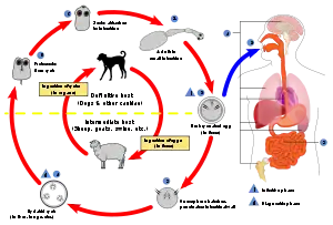 ![]() Життєвий цикл ехінокока Життєвий цикл ехінокока | |