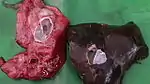 | Симптоми | біль у животі, гепатомегалія, схуднення, печія, нудота, блювання, кашель і кровохаркання |