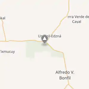 Розташовано у західній частині півострова Юкатана, на південь від міста Мерида (по шосе 180), неподалік від узбережжя Карибського моря, на відстані 65 км від міста Кампече.