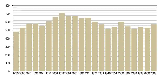 Динаміка населення (base Cassini de l'EHESS pour les nombres retenus jusque 1962[3], base Insee à partir de 1968 (population sans doubles comptes puis population municipale à partir de 2006)[4] · [5] ):