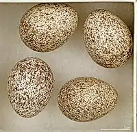 У повній кладці 4-5, зрідка 3 або 6 яєць. Шкаралупа злегка блискуча, біла або мутно-білувата, світліша, ніж у полового жайворонка. Поверхня у дрібних, густих сіро-коричневих, оливково-бурих або зрідка червонувато-коричневих плямах; глибока плямистість фіолетово-сірого кольору. Середній розмір яєць 21,25×16,02 мм.