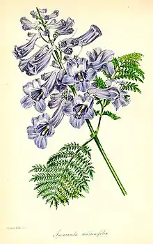 - Jacaranda mimosifolia information from NPGS/GRIN. www.ars-grin.gov. Архів оригіналу за 14 травня 2009. Процитовано 9 березня 2008.