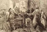 | Папо Клименте! Королю Філіпе! Гійоме де Ногаре! Не мине й року, як я покличу вас на Суд Божий! Проклинаю вас! Прокляття на ваш рід до тринадцятого коліна!.. |