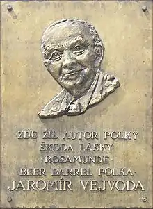 ![]() Меморіальна дошка Яромира Вейводи Прага. Збраславська площа, № 453 | ||||