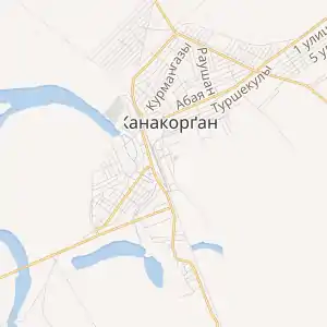 Розташований на правому березі річки Сирдар'я, за 180 км на південний схід від Кизилорди. Залізнична станція на лінії Оренбург—Ташкент. Щебеневий завод, промкомбінат, грязелікувальний курорт.