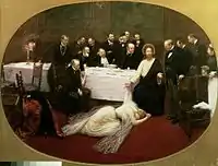 Назва «салонне мистецтво» виникла тому, що члени журі офіційних мальовничих виставок Парижа, від яких залежав відбір творів, що виставляються на огляд широкої публіки, підтримували академістів і «неокласиків», які виставлялися в «Квадратному салоні». Згодом вона поширилось далеко за межі цього кола живописців. Серед художників цього напрямку — Аморі-Дюваль, Глейр, Шопен, Кутюр, Кабанель, Бугро, Делоне, Доре, Лефевр, Каролюс-Дюрана, Перро, Ленуар, Сіньяк, Годвард, Блаас, Больдіні, Жерве, Тіссо[15].