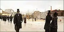 Готові під вінець наречений з нареченою, поранений солдат, пригнічений бідняк складають зовсім особливу сцену в картині Беро, — треба сказати, картині тенденційній і зовсім не художній[20].