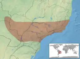 Мешкає у центральній та південній Бразилії, Парагваї, північній Аргентині та південно-східній Болівії.