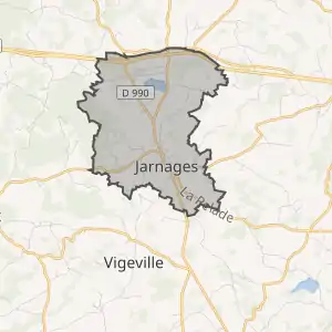 - Розташування муніципалітету Жарнаж на мапі Франції та сусідні муніципалітети