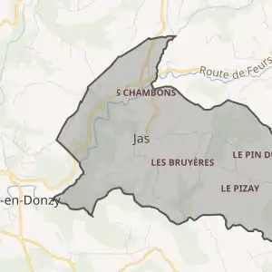 - Розташування муніципалітету Жас на мапі Франції та сусідні муніципалітети