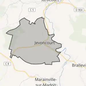 - Розташування муніципалітету Жевонкур на мапі Франції та сусідні муніципалітети