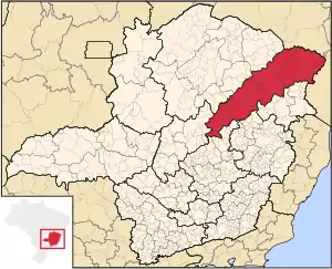 Жекітіньонья на карті штату Мінас-Жерайс