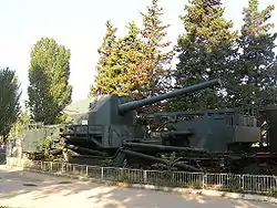 У 1990-х до паровоза був причеплений гарматний транспортер ТМ-1-180 з гарматою Б-1-П калібу 180 мм. Транспортер відіграє символічну роль і не має прямого відношення до «Железнякова». Один транспортер ТМ-1-180 дійсно використовувався під час оборони Севастополя, але не в складі бойового формування бронепотягу. Основне їх застосування було на Ленінградському фронті.