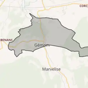 - Розташування муніципалітету Жемонваль на мапі Франції та сусідні муніципалітети