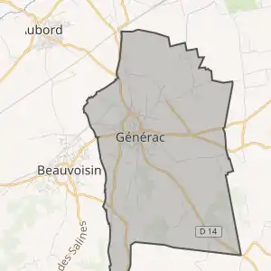 - Розташування муніципалітету Женерак на мапі Франції та сусідні муніципалітети