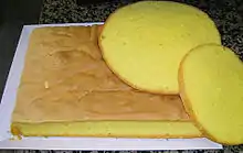 - Carole Bloom, The Essential Baker: The Comprehensive Guide to Baking Page 601 2007 "American sponge cake traditionally has no fat and has a light, airy, delicate texture. It is a close relative of the classic French génoise cake, which is made with a small amount of butter. "