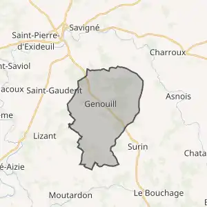 - Розташування муніципалітету Женує на мапі Франції та сусідні муніципалітети
