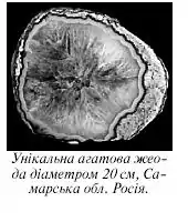 Розрізняють агатові, кварцові, халцедонові, кальцитові, баритові, целестинові та інші жеоди.