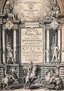 - Geŕard Thibault. Academie de L'espée: Ou Se Demonstrent Par Reigles Mathématiques Sur Le Fondement D'un Cercle Mysterieux la Théorie Et Pratique Des Vrais Et Iusqu'à Présent Incognus Secrets Du Maniement Des Armes À Pied Et À Cheval. — 1628.