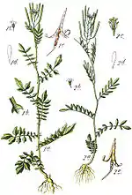 Однорічна трав'яниста гола рослина 10–30 см заввишки. Листки з 5–8 парами листочків. Квітки дуже дрібні, чашолистки 1.5 мм довжиною. Пелюстки білі, 2–2.5 мм завдовжки. Стручки короткі, 1–2 см завдовжки, прямостійні[2]. Насіння блідо-коричневого кольору, довгасто-яйцеподібне, 0.6–0.9 × 0.4–0.6 мм. 2n = 16[3].