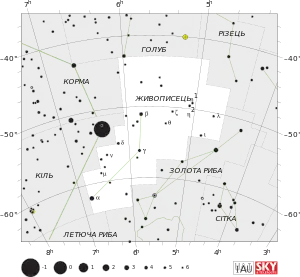 | Найяскравіша зоря | Альфа Живописця 3,24m |