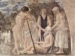 Апокрифічна історія Животворного Хреста знайшла своє відображення в численних зображеннях. Найповніший цикл зображень цієї історії виконаний у 1452—1465 роках П'єро делла Франческом на фресках у головній капелі базиліки Сан Франческо в Ареццо.