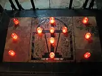 Разом з Хрестом Господнім Оленою були знайдені чотири цвяхи та титли INRI.