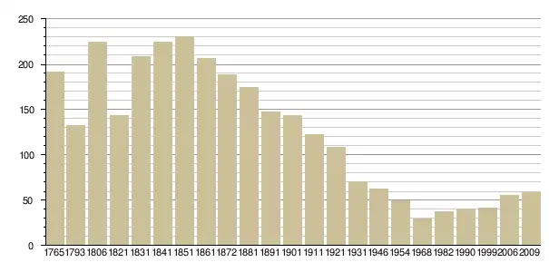 Динаміка населення (Baratier, Duby & Hildesheimer pour l’Ancien Régime ; Insee[3], EHESS[4] pour les chiffres issus des recensements légaux ):